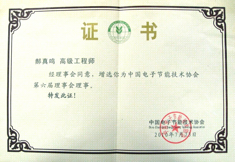 2009年9月18日至21日,中国电子节能技术协会第六届会员代表大会在扬州市召开。在本次会议上,选举产生了中国电子节能技术协会第六届理事会理事,我校新校区管理与建设办公室郝真鸣主任当选为本届理事会理事。