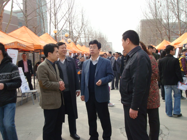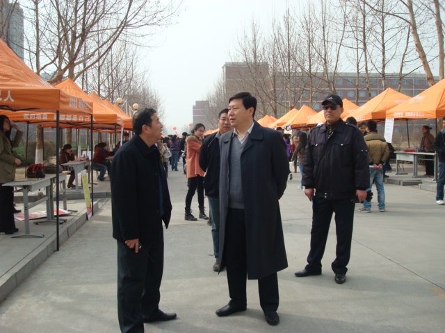 2012年3月29日上午,我校工商学院2012年毕业生春季双向选择会在新校区至诚道拉开序幕,来自省内外的近400家企业参加了招聘会,前来应聘的毕业生达4000余人。在我办和工商学院负责同志的陪同下,郭健副校长视察了“双选会”现场,听取了组织负责人的工作汇报,并与部分招聘企业的负责人及应聘毕业生进行了亲切交谈。